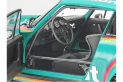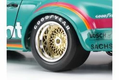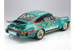 This massive 1/12 scale model car kit recreates the iconic Porsche 934 with the Vaillant livery. From 1976, the commercially sold race car Porsche Turbo RSR was used in World Sportscar Championship races. As it was to be used in Group 4 GT class and the 930 Turbo was its base, it was called the 934. Its 2,993cc flat-6 turbo-charged engine thumped out an impressive 485hp with 62kg/m of torque. One of the 934 racecars was run in the 1976 DRM (German Racing Championship) by Kremer Racing. The cobalt green car took three victories that season, carrying driver Bob Wollek to the top of the Division 1 drivers’ standings.