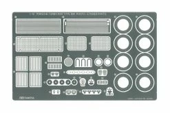 - Photo-etched parts depict brake discs, catch pins, side radiator, and seatbelt.