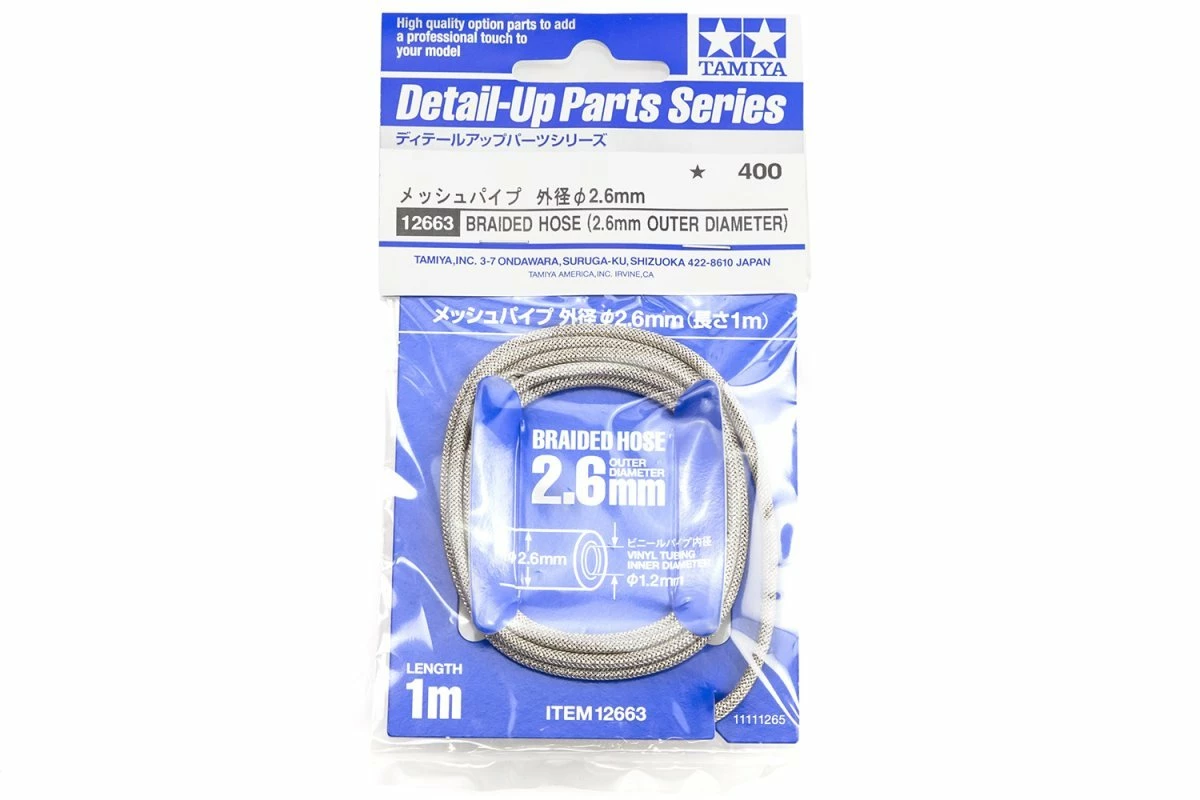 Model detail parts are essential to making a car or motorcycle model stand out. This braided hose is perfect for creating brake lines, fuel pipes etc. as seen on real life vehicles. The surface texture is artfully depicted using interior rubber tubing wrapped with thread. Simply attach to your model to raise the detail even further!