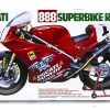 Ducati, the renowned Italian motorcycle manufacturer, is highly regarded by motorcycle enthusiasts the world over. Their current top-of-the-line “916” bike was unveiled to the public during the 1993 Milan Motor Show. In recent years, Ducati has been a dominant force at the World Superbike Championships. Their 916 was developed using the latest racing technology and expertise, and became a very effective base machine fore these Championships. Its 114 horsepower, 916cc, liquid cooled L-twin cylinder engine uses a computer controlled fuel injection system and Ducat’s traditional Desmodromic valve operation system. This valve system uses cam mechanics for both opening and closing the valves, while a conventional system closes the valves with springs only. This powerful engine is mounted in a light weight and extremely rigid, chrome molybdenum steel tubular frame. The rear swing arm suspension uses a mono-arm for quick tire changing during competition. Showa’s shock absorbers and Brembo brake calipers are used at both ends. The 916 has a 2-stage adjustable caster offset system. Its aerodynamic cowl design is very distinctive, differing from other racer-replica bikes. The front cowl has engine air intake openings and mounts the dual headlamps. The fuel tank is ergonomically sculptured to fit the rider’s varying posture during hard riding. The 916 is a true street legal racing machine on the leading edge of performance and styling.