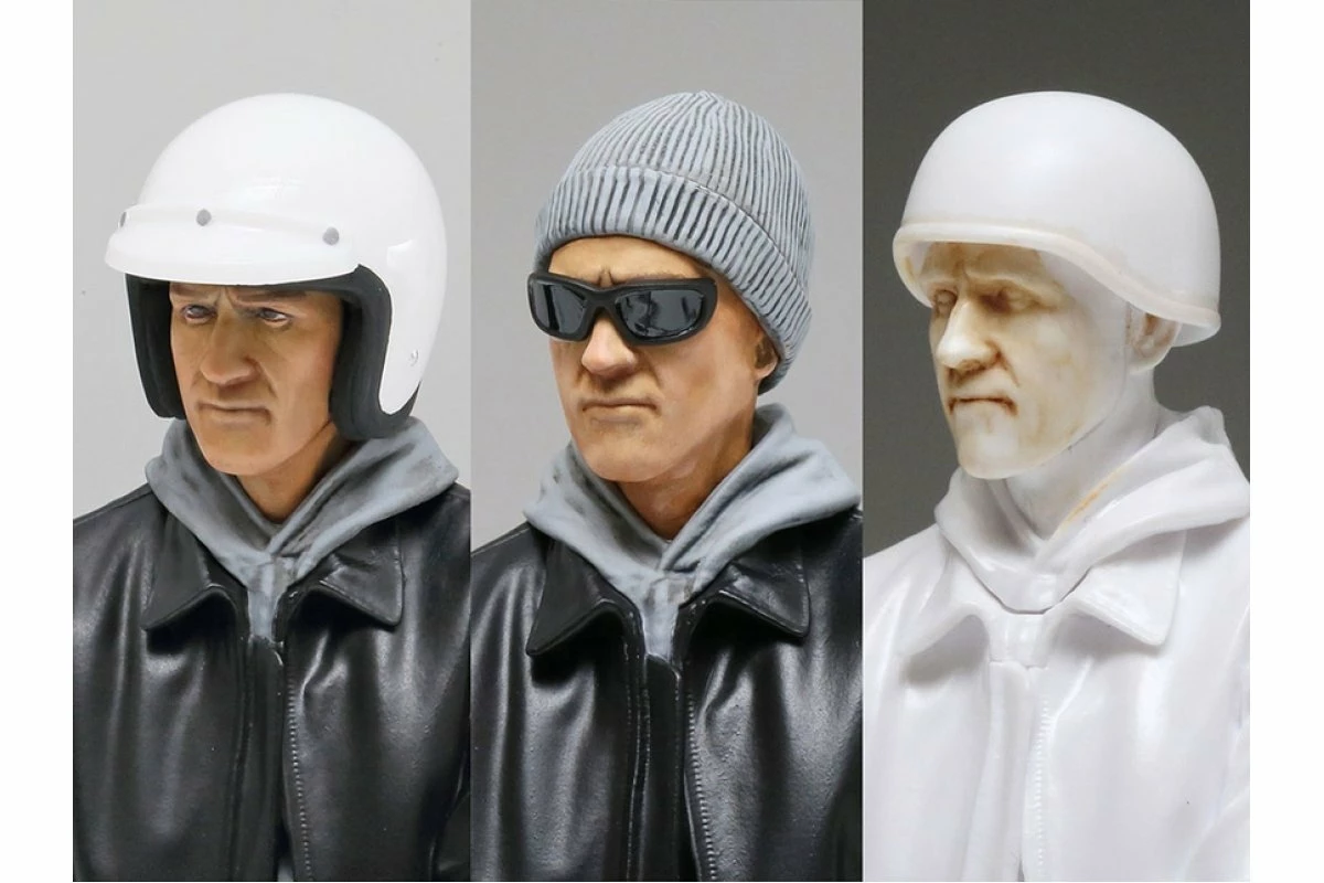 - Parts included making either of two different options: 1. The rider helmeted and pulling on his gloves, ready to mount the bike; or 2. The rider having just got off the bike, helmet in hand and with a beanie hat on his head.