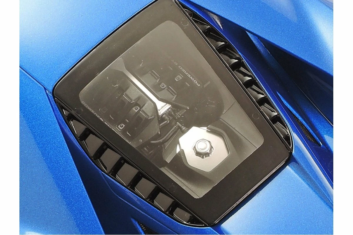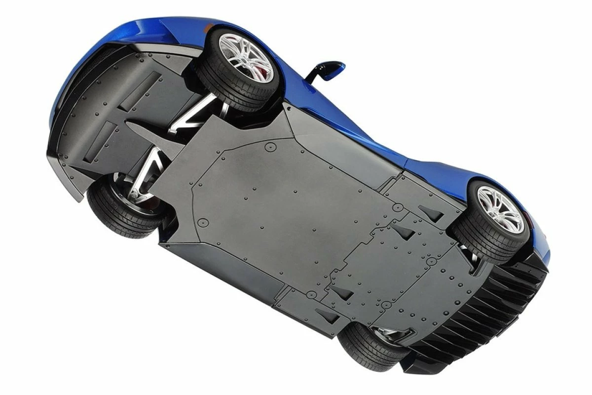 Ford poured their expertise into the carbon fiber body, endowing it with highly refined aerodynamics and an alluring teardrop shape incorporating sweeping rear fenders and unique buttresses, plus an active rear wing. The 647 horsepower 3.5-liter EcoBoost V6 engine offers awesome power and exemplary response, making this street-legal car equally at home on the racetrack. Tamiya’s model replica faithfully captures all these details thanks to the FORD Motor Company and the real-world example that Tamiya’s car designers examined in Southern California. The end result is a replica that is sure to provide car modelers a rewarding building experience and an exquisite model to display.Â