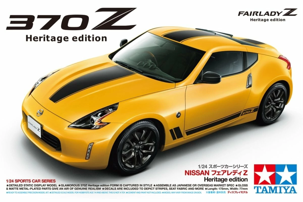Truly iconic car names are few and far between, but one must surely apply that moniker to the “Z-Car”, sold in Japan as the Fairlady Z – from its debut as the 240Z (S30) in 1969 through to the present day, it has delighted sports car fans across the world. The current 370Z design has been tweaked and updated since its first release in 2008, and in May 2018 a special Heritage edition was released with racing stripes and an interior design inspired by the special “Zap” edition of the classic 280Z. Tamiya has faithfully reproduced this heritage edition Z in 1/24 scale with all the detailed edition parts faithfully depicted.