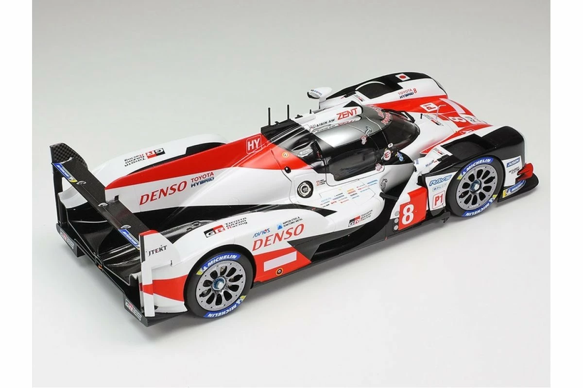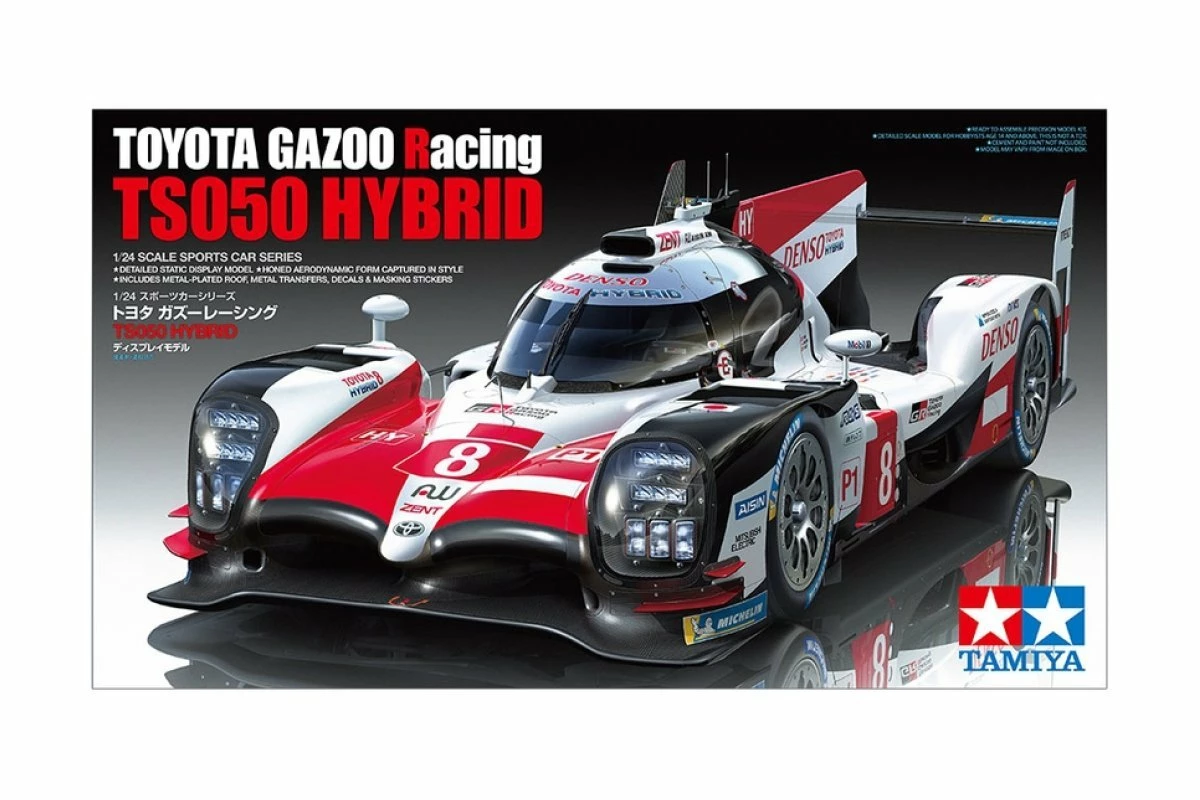 This Tamiya 1/24 scale model replica recreates the 2018 TOYOTA GAZOO Racing TS050 Hybrid car, which made a huge splash in the racing world thanks to a refined design with great aerodynamics and a hybrid powertrain pairing a 2.4-liter engine and lithium-ion battery. In 2018 they became the second Japanese car manufacturer to win the 24 Hours of Le Mans with Toyota scoring a 1-2 finish!Â