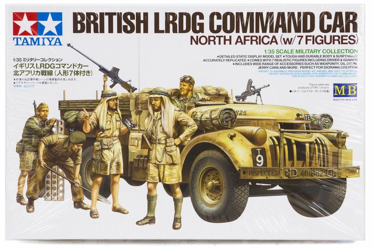 The LRDG (Long Range Desert Group) was a British unit which served in North Africa during WWII, performing reconnaissance and raiding duties. Their command cars were trucks which had been modified with weaponry, and proved to be a thorn in the side of German units in the area. Now, this comprehensive set, done in collaboration between Tamiya and Master Box Ltd., lets you create your own diorama with 7 figures in realistic poses, a vehicle and accessories all thrown in one box!