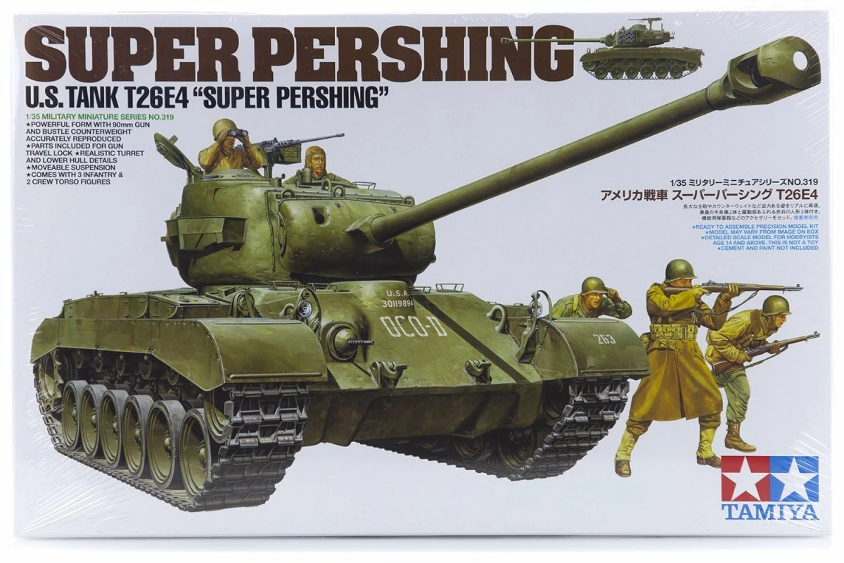 Development of what would become the M26 Pershing began in 1942. It was to be a replacement for the M4 Sherman, which was the standard U.S. Army tank at the time, and features such as a lower profile hull and cast turret were incorporated during the development process of the various prototypes. This eventually culminated in the T26E1 prototype armed with the 90mm M3 gun, and from that stemmed the production version which was called the T26E3. The first T26E3s were sent to Europe in January 1944, and as they were deployed to the battlefield, they were re-designated M26. Although over 300 reached the theater before the end of the war, only 20 actually saw combat. In these limited actions, the M26s proved capable of defeating the German Panther and Tiger tanks they were designed to counter.