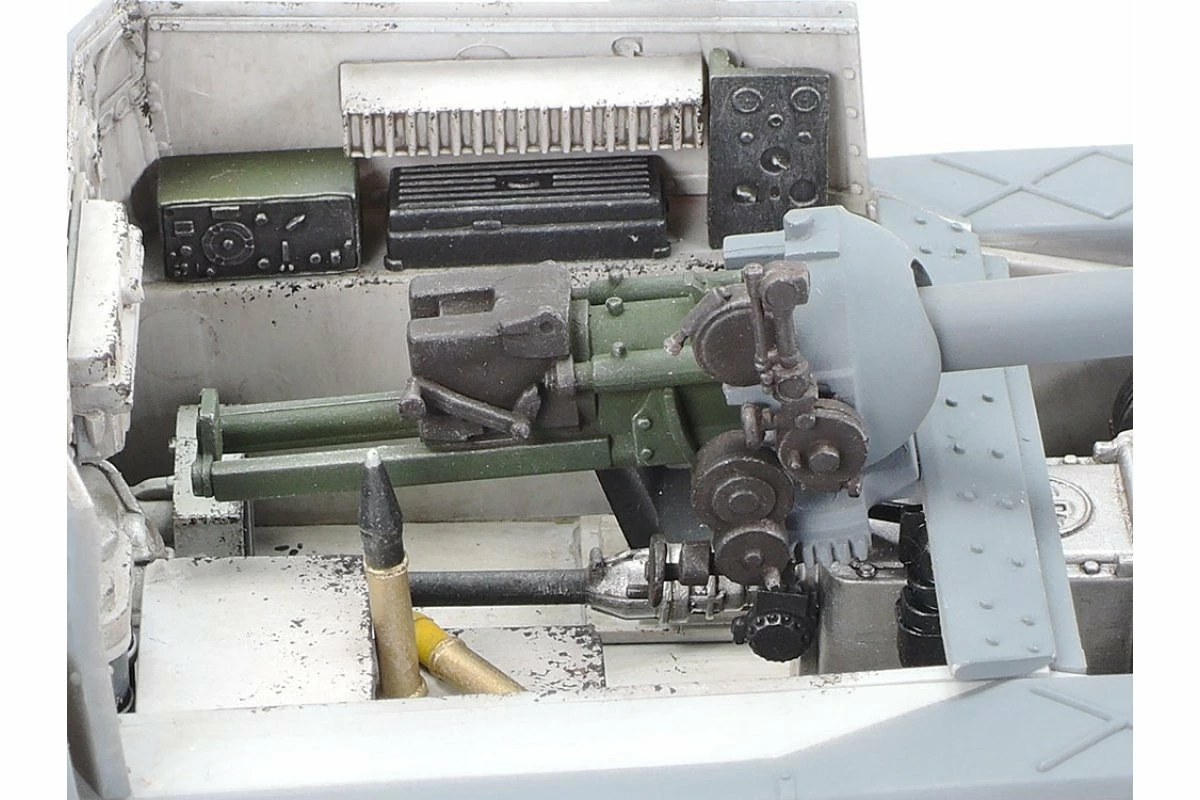 Among the various native armor fielded by Italian forces in WWII, the Semovente M40 da75/18 was perhaps the most successful, and it formed the base for the improved M42 da75/34 depicted by this model. The M15/42 medium tank provided the basic chassis, while superior penetration was achieved by the L/34 75mm gun. Although production began in Spring 1943, most vehicles ended up in German hands following the Italian armistice with the Allies in September of that year. They were mainly deployed in anti-tank units attached to German Infantry Divisions, and their low profile and powerful gun ensured that they were a threat to the enemy, particularly in ambushes; they fought until the German surrender of May 1945.