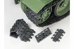 The Tamiya T-34-85 R/C model gets an updated re-issue with a modern transmitter and control unit set, plus new assembly type tracks! The T-34-85 was essentially an answer to the dominating German Tiger and Panther armor, and an effective one at that. Powered by an 85mm gun and defended by superbly sloped armor, it was manufactured from 1944 to 1946 and contributed to the Soviet march on Germany that helped bring the bloody conflict of WWII to an end.