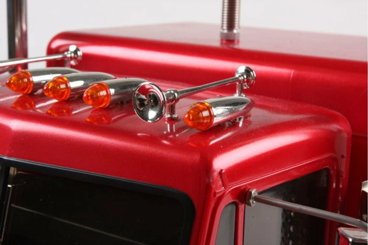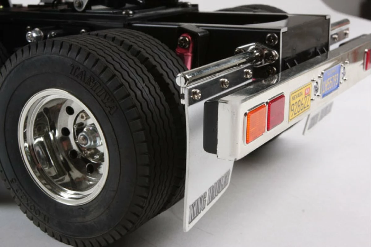 The Mighty King Hauler resembles the classic conventional American tractor truck. Powered by a 540 motor driven with a 3-speed transmission, which has no problem turning the dual rear axles. Each axle is supported with leaf spring and shocks. The metal C-Channel ladder frame, keeps the power to the pavement.