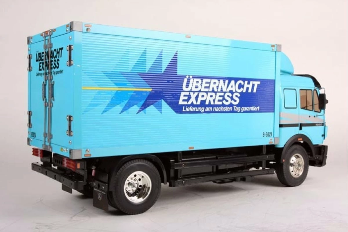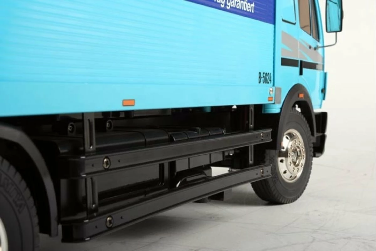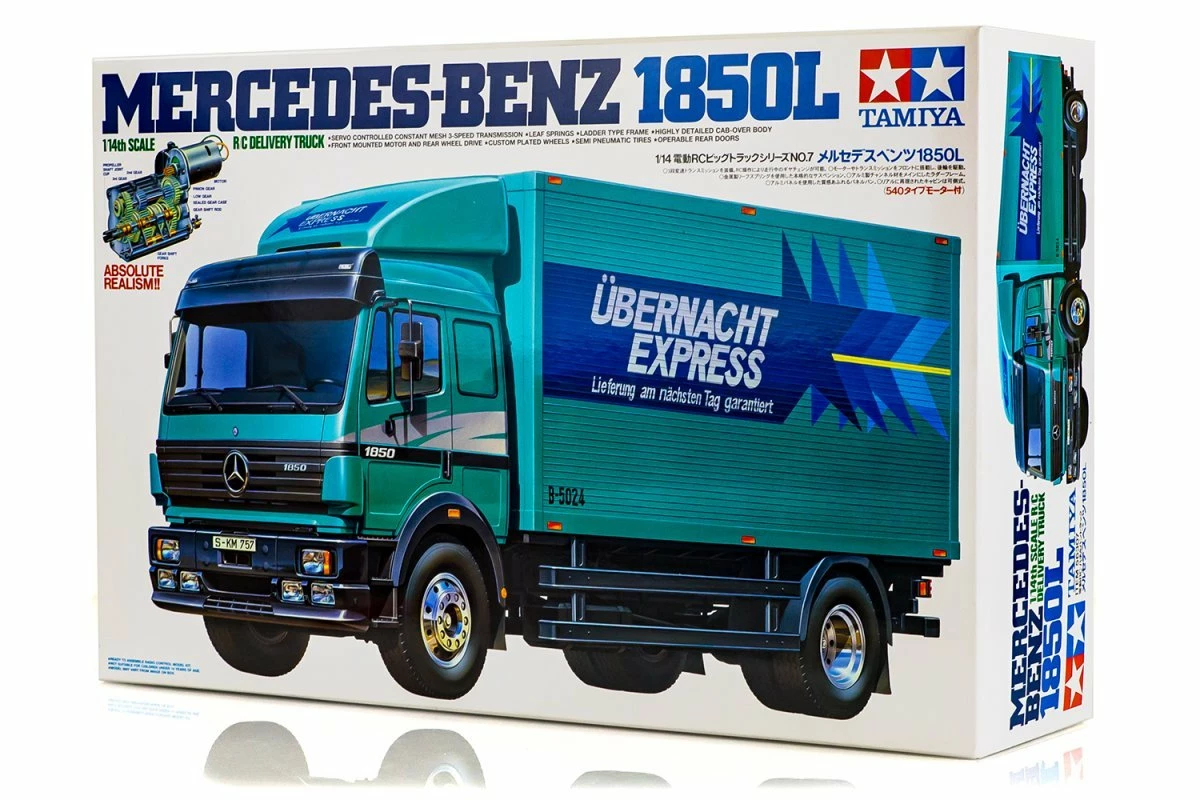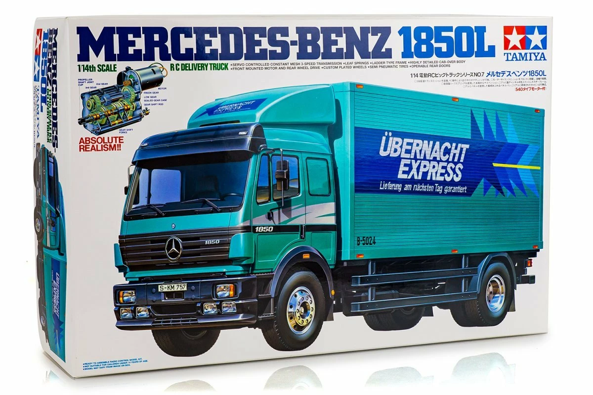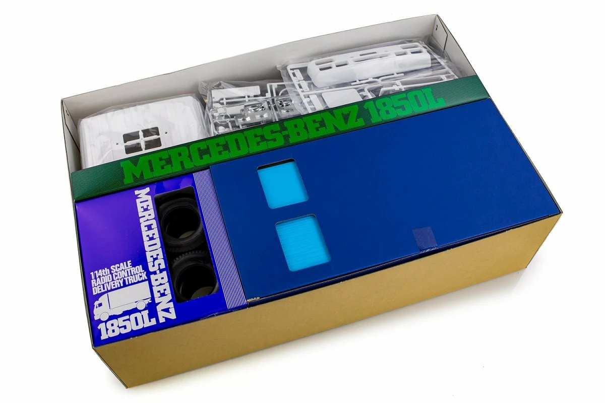 The 1850L delivery truck is regarded as a new trend setter with its aerodynamically sophisticated appearance and extremely reliable mechanics. Tamiya”s model of the Mercedes-Benz 1850L realistically captures the looks of the full-sized truck.