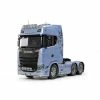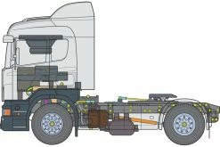 Tamiya proudly presents the R470 Highline, one of the trucks belonging to Swedish manufacturer Scania’s International Truck of the Year 2005 award-winning R Series. Body features replica-quality realism and the chassis features numerous metal parts for the frame and suspension for an added sense of volume. Assembly of the 3-speed transmission is effortless, and when used with a 4-channel transmitter, it will give fans full control of realistic gear shift operations. Beautifully reproduced cabin tilts forward separately from the fenders, just like the actual truck. The interior and exterior of the fenders themselves have also been accurately modelled for the most realistic look possible. Kit-included coupler enables linkage with any of Tamiya’s currently available 1/14 scale trailers, and the R470 is compatible with a wide range of Tractor Truck Option Parts as well.