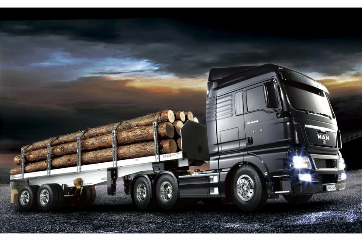 Also known as transporters that are used by F1 teams today, MAN Company’s tractor truck the TGX 26.540 6×4 XLX was awarded “The 2008 Truck of the Year.” This award winning truck comes reproduced as a 1/14 scale electric R/C model. The model features a ladder frame chassis with aluminum channels, suspension with metal leaf springs and friction dampers, and rear axles equipped with differentials. Providing this truck with a realistic scale finish are parts which feature two kinds of metal-plating and metal transfers to beautifully depict details such as the front grille’s emblem. Furthermore, the chassis features a 3-speed transmission which allows gear shifting while driving via transmitter, with the sound and lighting actions reproduced by the separately available Multi Function Control (MFC-01) unit.