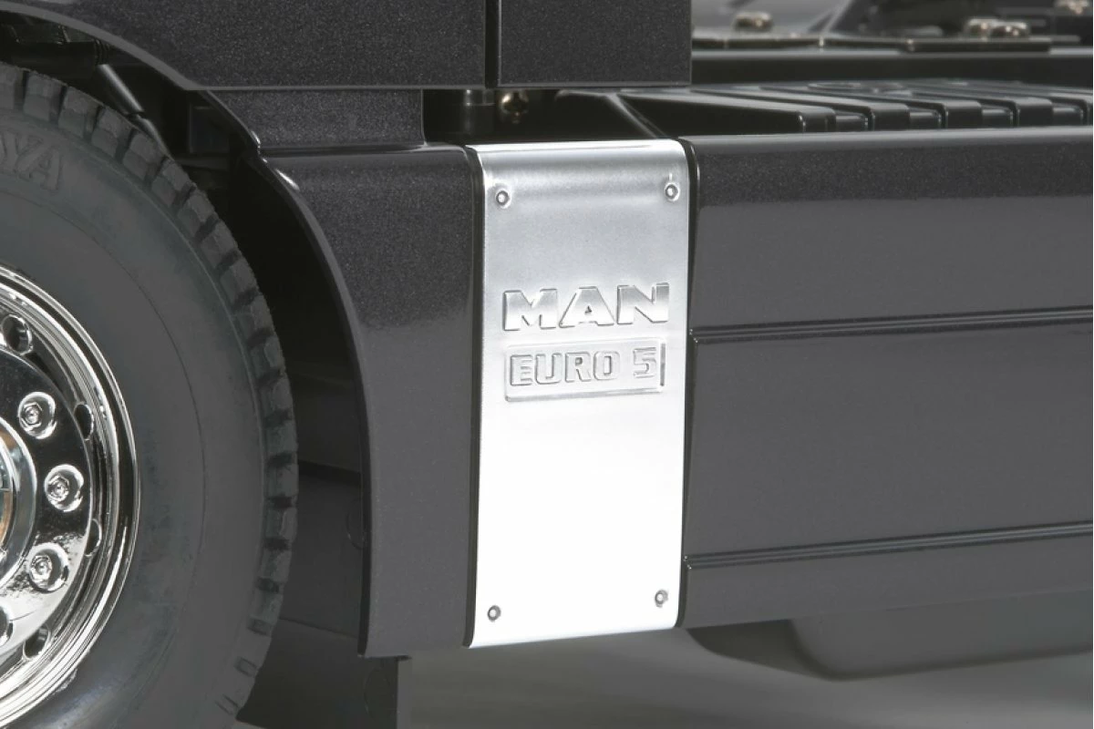 - The left side exhaust cover is depicted with matt finished metal-plated part which features the MAN EURO 5 engrave.
