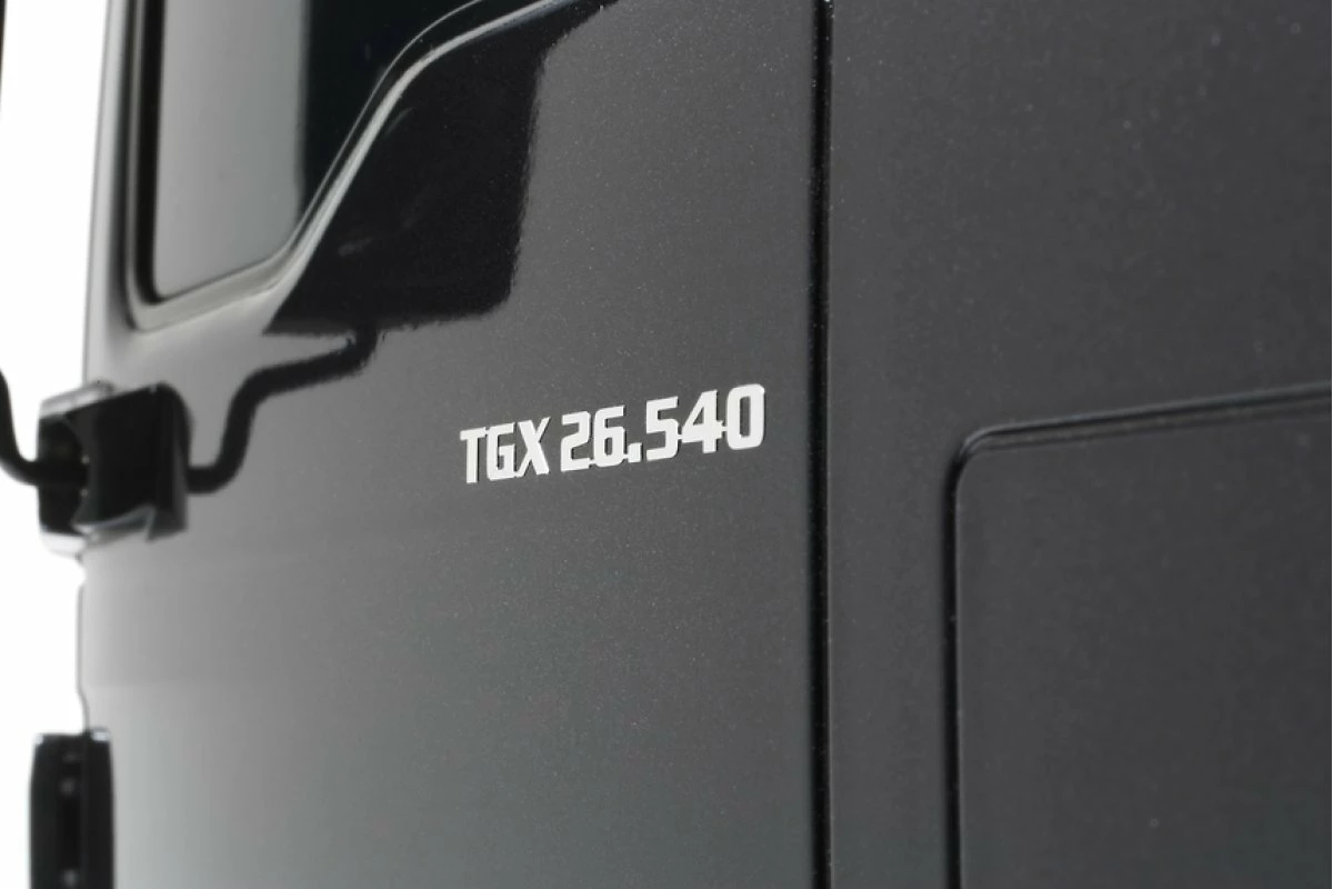 - The TGX 26. 540 logos seen on both doors are depicted with metal transfers for greater scale presence.