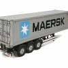 The container features an aluminum frame with durable ABS front, top, and side panels. The well-known NYK logos are reproduced on the included vinyl sticker sheet, and the container can be detached from the semi-trailer after assembly. The 3-axle semi-trailer chassis comes with a realistically reproduced leaf-spring suspension. This semi-trailer can be connected to any Tamiya 1/14 R/C Tractor Truck and a variety of Option Parts can also be installed for enhanced realism.Â