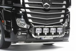 This is a highly accurate 1/14 scale radio control model that recreates the Mercedes Benz Actros 3363 3-axle truck. The Actros series debuted in 2011 and was named 2012 Truck of the Year. Powered by a 15.6-liter inline-6 turbocharged diesel putting out a max of 630hp, the actual 3363 can haul up to 250 tons!Â