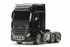 This is a highly accurate 1/14 scale radio control model that recreates the Mercedes Benz Actros 3363 3-axle truck. The Actros series debuted in 2011 and was named 2012 Truck of the Year. Powered by a 15.6-liter inline-6 turbocharged diesel putting out a max of 630hp, the actual 3363 can haul up to 250 tons!Â