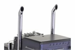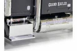 The model’s ladder frame chassis features aluminum side channels with resin cross members and is equipped with a highly realistic suspension utilizing metal leaf springs and friction dampers. A front-mounted motor and 3-speed transmission power the two rear wheel axles, which are fitted with built-in differentials to enable smooth cornering. A 4-channel R/C system and multi-function unit allow you to drive the vehicle and experience realistic lights, sounds and vibrations. (Both sold separately)