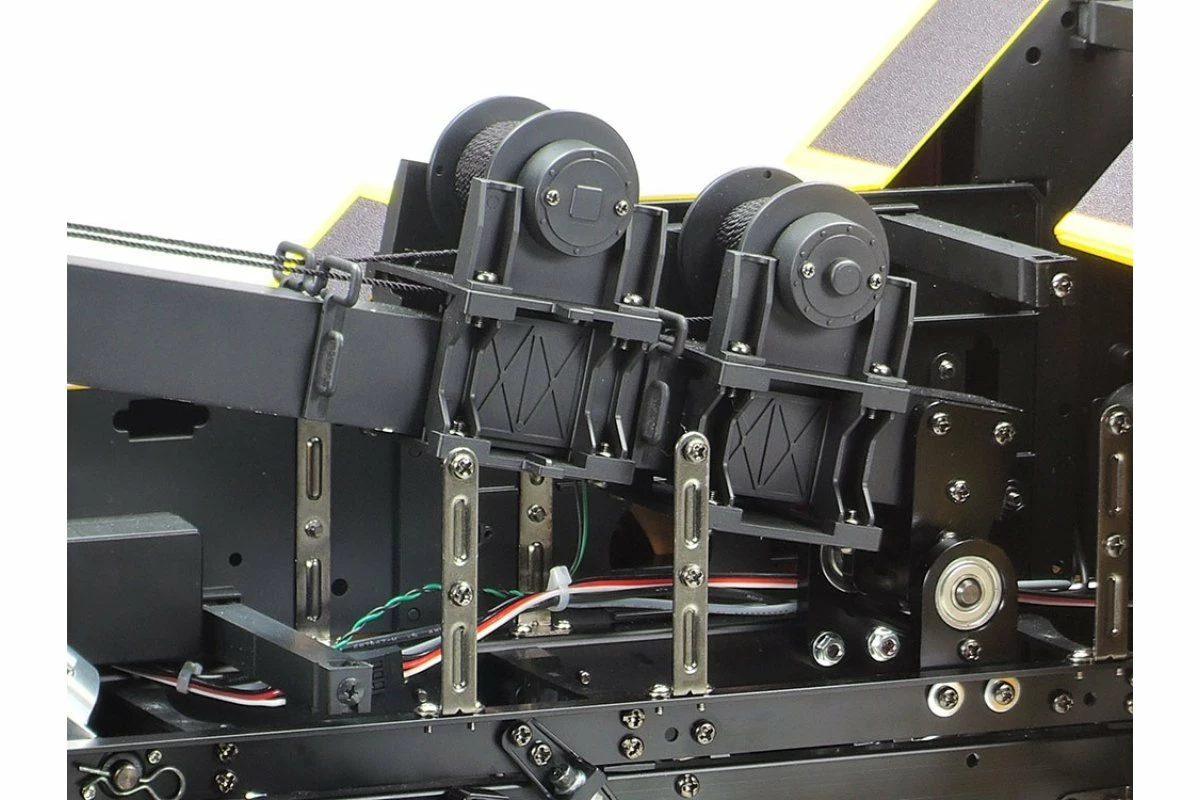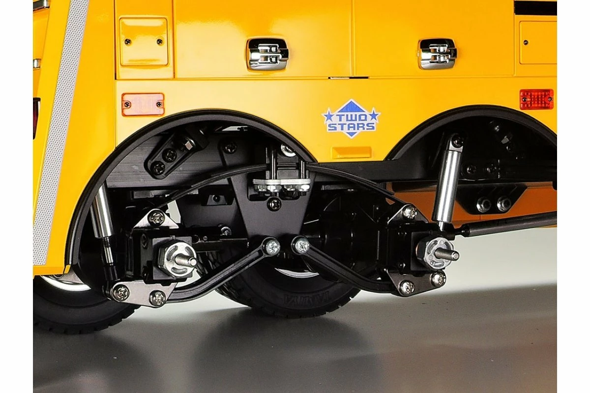 - This model’s front axles feature the first twin steering system seen in the Tamiya 1/14 Truck series.