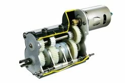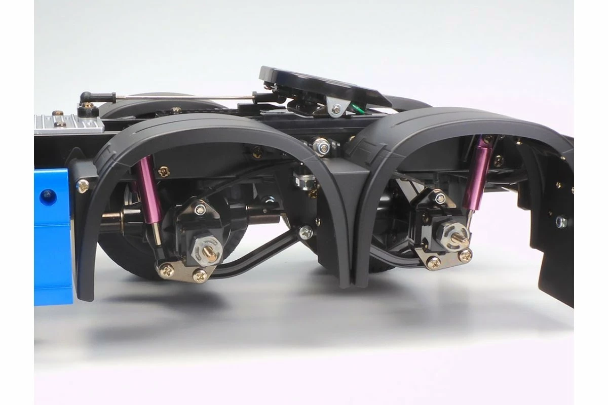 rear axles are equipped with differentials. - 3-speed transmission can be controlled to allow gear shifts via 4ch R/C transmitter.