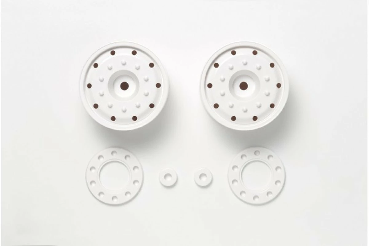 These are wheels that can be used on any of Tamiya’s 1/14 scale RC tractor Trucks. Compared to the standard kit offered color, these wheels come in white for added diversity to your rig.
