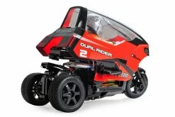 This radio control model replicates delivery trikes widely seen making deliveries in Japan. When the model turns, the 3-wheel chassis “leans” into the corner much like their full-size counterparts. The 3-wheel chassis features the motor in the rear section, with the battery in the front. The two sections are linked in the middle, and a steering servo leans the entire front section left and right to effect turns. Furthermore, support arms are linked to the steering servo, and help to right the model if it happens to tip over.