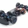 Equipped with many race-use parts as a standard, the TB-03 also features a longitudinally-mounted motor and shaft-driven 4WD drivetrain with 3-piece propeller shaft. The bathtub frame also has an integrated motor cooling duct to enhance motor performance. The suspension mimics the TRF416’s front and rear uprights, short reversible suspension arms, and with the unique front inboard layout it gives fans a highly evolved 4WD chassis. → Click here for more info about the TB-03 chassis.