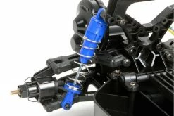 The bathtub type frame chassis features a longitudinal battery layout for a lower centre of gravity and optimum weight distribution. 4-wheel double wishbone suspension is equipped with coil spring shocks to provide superb off-road traction. A sealed gearbox protects against sand and debris and is equipped with differential gears to efficiently transmit the power from the type 380 motor. By installing a separately available Type 540 motor and corresponding pinion gear, more powerful driving can be enjoyed.