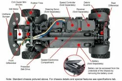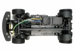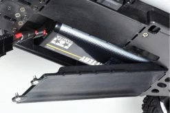 The XV-01 chassis offers exciting R/C driving action on both on- and off-road surfaces. It features a front-motor, belt-driven 4WD layout with the gearboxes, drive belt, battery, and R/C unit areas protected by covers against dirt and debris. Holes in the bottom of the chassis further help remove any debris which manages to get onboard, ensuring unhindered off-road performance. Long steering linkage provides stable wheel alignment. In addition, detachable wheel well liners help prevent mud and gravel intrusion. Gear differential units enable customization with different viscosities of differential oils.