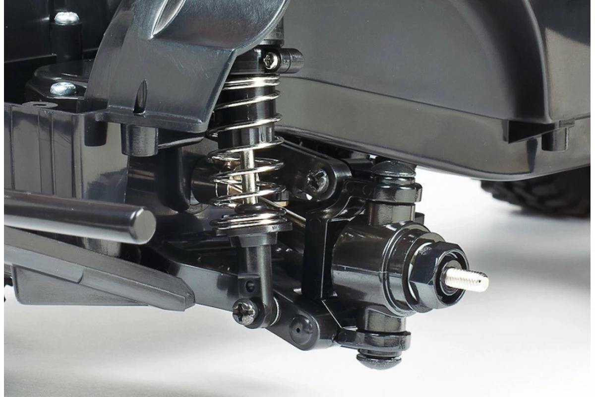 The Tamiya R/C replica faithfully captures all of the full size FJ’s details down to the large headlights positioned near the center of the front of the car, chunky fenders, and a trio of windscreen wipers. The FJ body is mounted on the capable CC-01 Cross Country chassis, which features independent front suspension and a rear 4-link rigid suspension set up for fun scale trail running enjoyment.