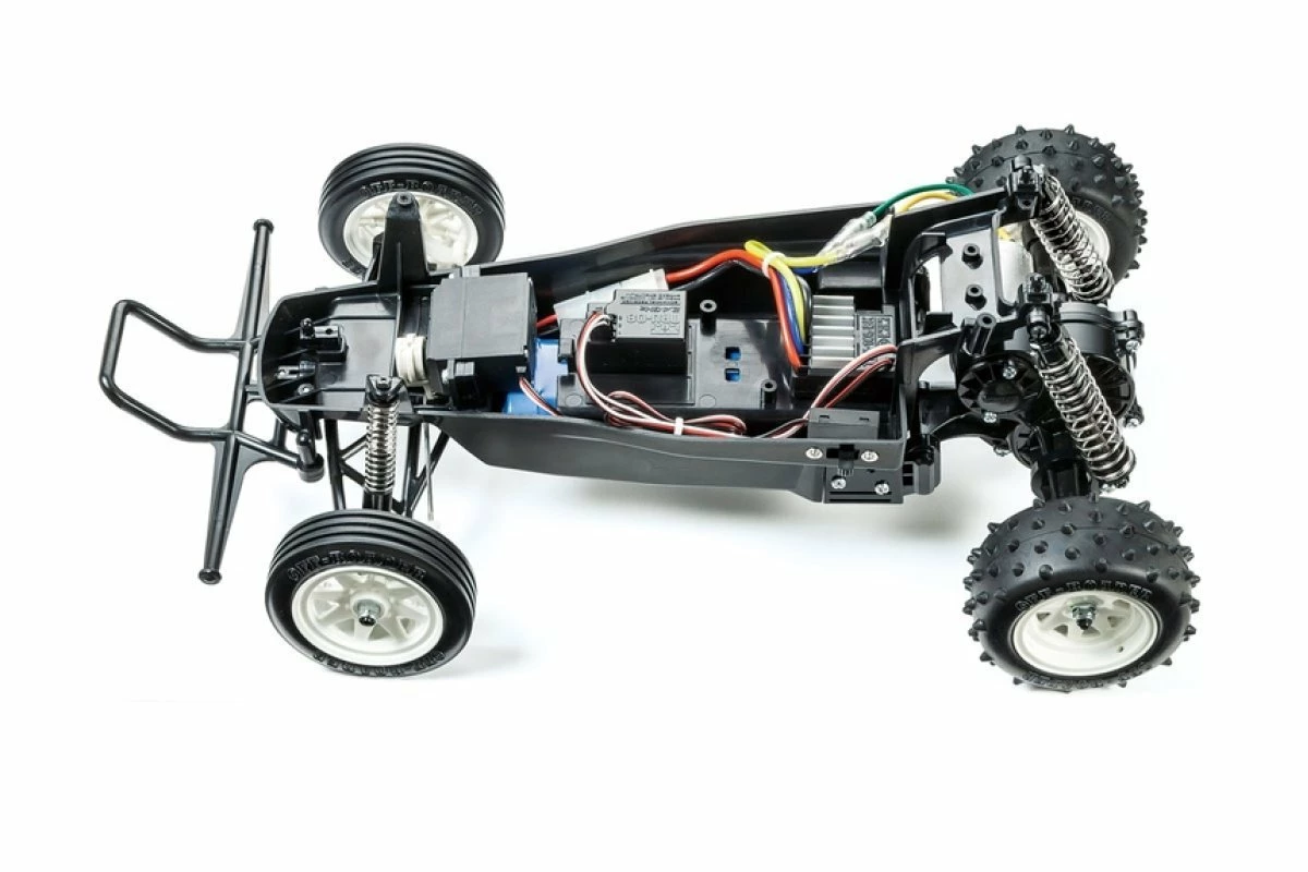 The Grasshopper II is one of Tamiya’s iconic radio control car kits from the late 1980’s. It was an enhanced follow up release to the original Grasshopper kit. This re-release (2017) kit features a number of updates while keeping largely faithful to the original model. Its streamlined construction process makes this kit perfect for less experienced users and R/C veterans alike, while separately sold option parts can be used to enhance the model.