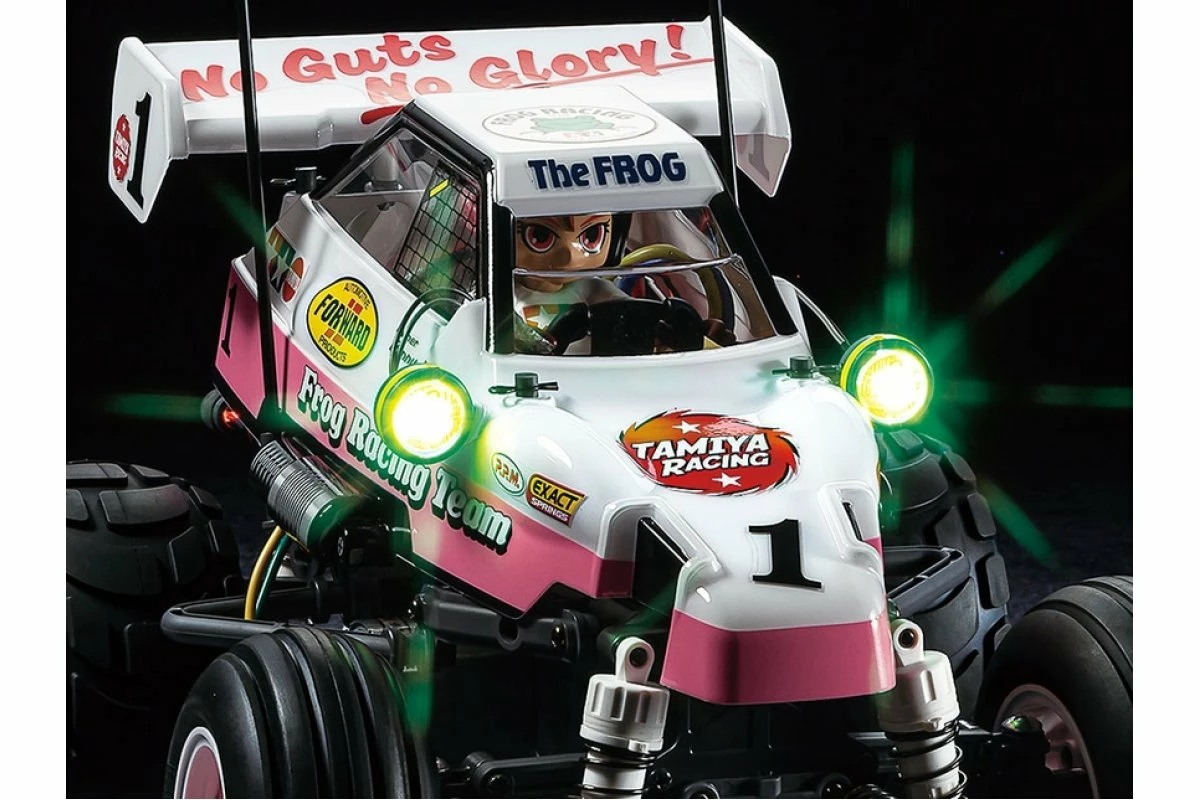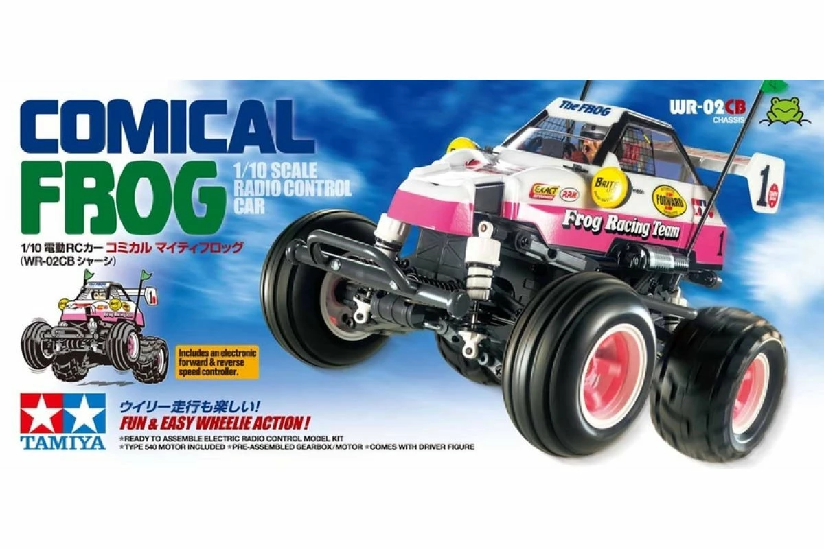 The original FROG needs little introduction. It was a Tamiya legend which inspired legions of fans since the 1980s. For many, it was their very first introduction into the world of radio control assembly kits. The original FROG is still among Tamiya’s best-selling kits to this day. Now the legend is re-imagined as the Comical FROG, with a new body inspired by the famous original. The re-imagined body sits on a new and dedicated variant of the proven off-road chassis: the WR-02CB.