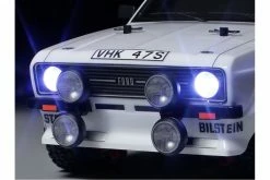 This R/C model assembly kit recreates the classic Ford Escort Mk.II in rally racing form. It was a RAC Rally Champion from 1975-1979. The pre-painted body sits on top the Tamiya MF-01X chassis that is capable both on asphalt and flat dirt surfaces.