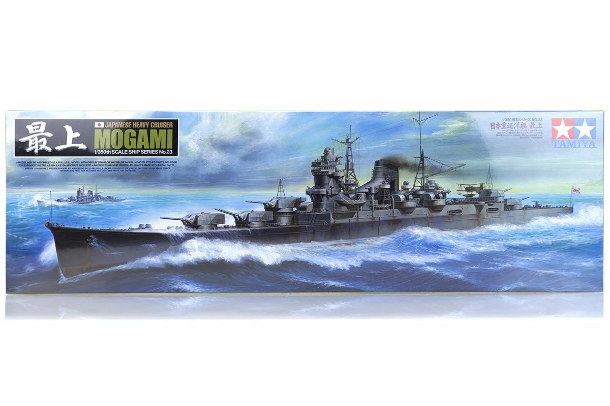The First Fleet Replenish Program of 1931 gave Japan a special allowance to build 50,955 tons worth of new light cruisers armed with 6-in guns. Construction of the new fleet began at Kure Naval Arsenal with the Mogami. The original Mogami was equipped with 5 triple 15.5cm gun turrets, 4 triple 61cm torpedo launchers, 4 twin 12.7cm gun mounts, protection against 8-in. shells, 4 twin 25mm guns, and 2 twin 13mm machine guns. The cruiser held all of this equipment within the 8,500-ton displacement limit. When naval treaties were removed, the ship was outfitted with 20.3cm gun turret, which caused the ships to be top-heavy and unstable. The Mogami underwent numerous reinforcement modifications such as hull strengthening, resizing of the bridge, and repairing cracks and hull plate. The Mogami was involved in the WWII invasion of Java at Bantam Bay, the Indian Ocean raids in the Bay of Bengals, Midway Invasion, and was defeated by a torpedo from Akebono off the coast of the Panaon Islands.