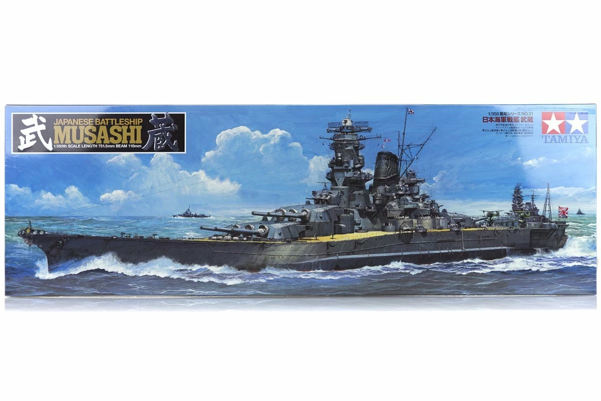 The Musashi was the second ship in the Yamato-class which were the largest battleships ever built. Completed in 1942, the Musashi took part in various campaigns before finally meeting her fate at the hands of U.S. Navy aircraft in the Battle of Leyte Gulf. Tamiya”s precision-made assembly kit model recreates this giant battleship in exquisite detail, including her defensive anti-aircraft suite of numerous single 25mm cannons on the main deck. This different anti-aircraft armament makes for an interesting comparison with the Yamato. Tamiya rereleased Musashi in 1981 and this great model kit is available again with new mast parts.